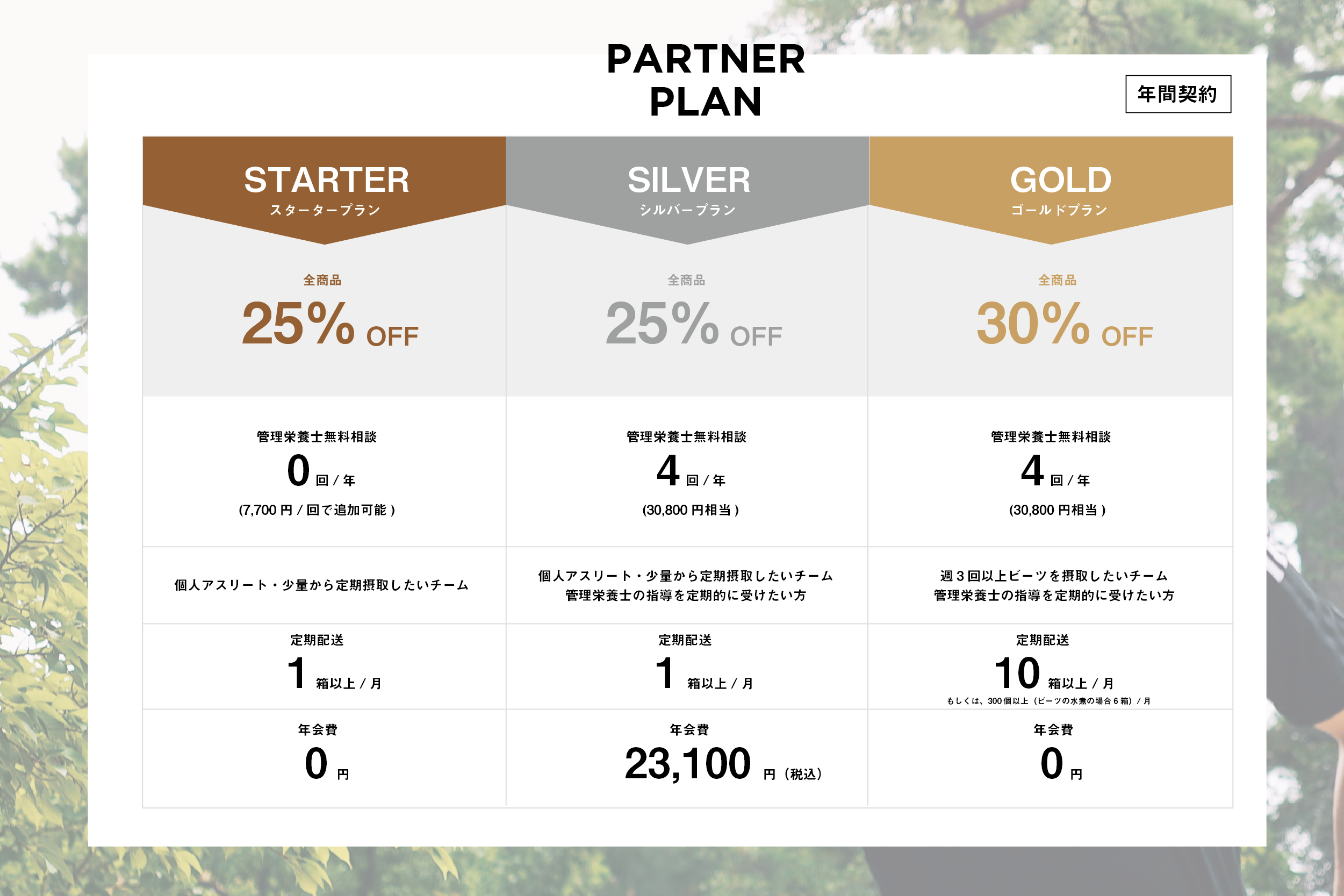 2022年、私たちが創業した当時からの想いです。そのために、美味しい国産のビーツを使い、アスリートの力に寄り添える商品開発を続けてまいりました。そんなチカラを届けるためのパートナープランです。